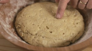 Now in our video demonstration above, we suggest using a damp cloth to cover it. You probably need a couple of layers of damp cloth, because you don’t want a tough skin to develop on your dough while the yeast is doing its thing. A better choice is plastic wrap. Just press it right down on top of the dough.
