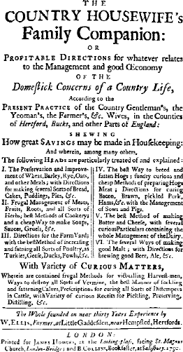 Here’s a link to an excellent resource for best (and worst) cooking, food-preparation, and home-remedy practices of southern England, compiled and published by William Ellis in 1750.