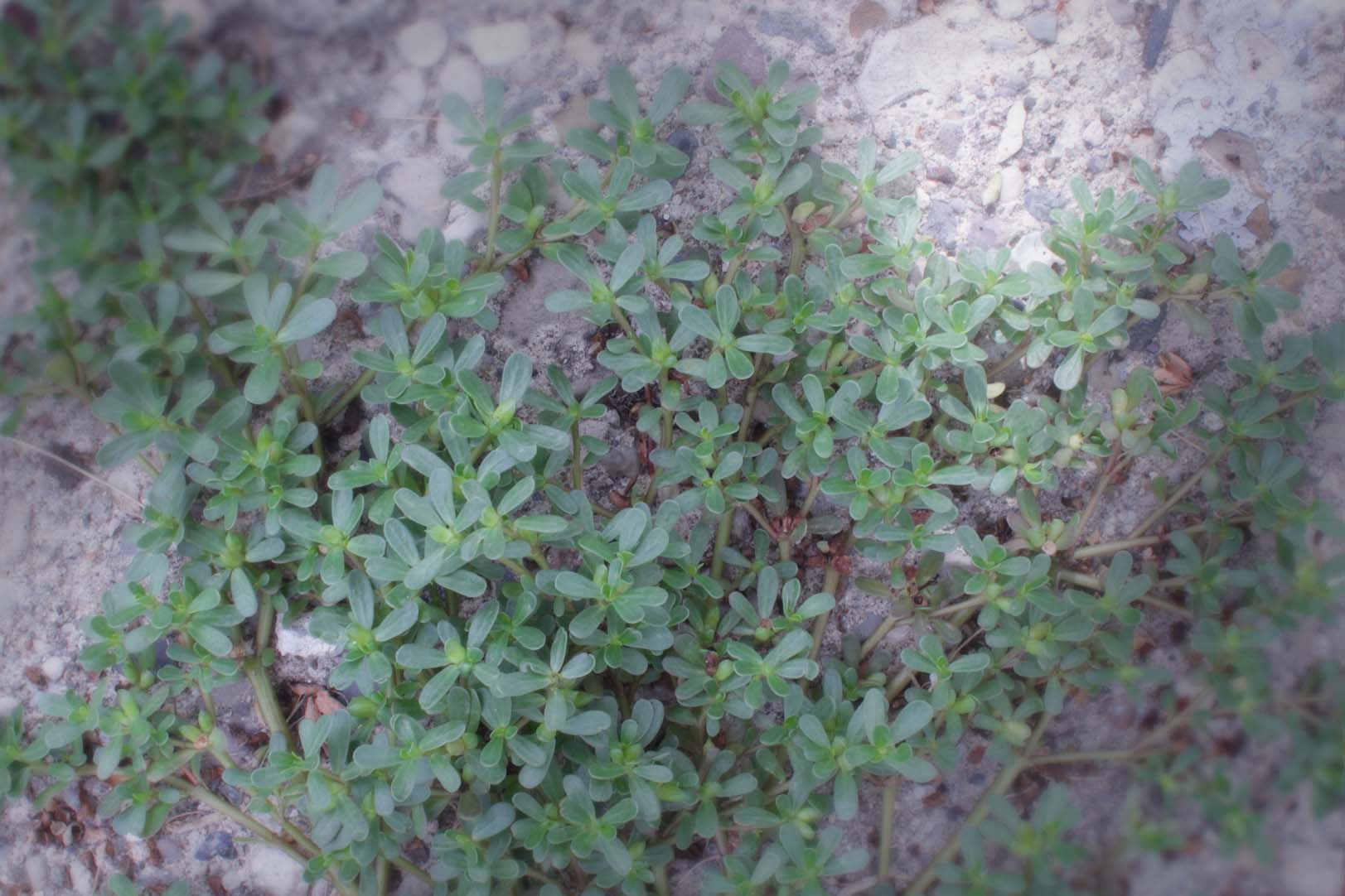 The other day I braved the heat and went outside to uproot those few remaining living things. I felt a bit “Grinchy” doing so. As I made my way to the front of the house where the tallest stand thrived, I was delighted to find a splayed-out clump purslane growing up through the crack in my scalding hot sidewalk.