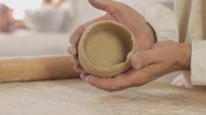 In contrast to short pastes and puff pastes, standing pastes go in the opposite direction on the temperature scale. Ingredients are relatively the same, but the fat is melted in boiling water.  The resultant dough has a similar texture to “Play-do.” It can be rolled out into sheets, allowed to cool, and then constructed into large free-standing crusts, or it can be pressed and manipulated into individual-size cups.