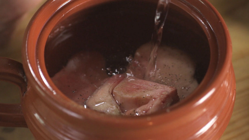 bonesPrior to placing the pasty in the oven, place your beef bones into a cooking pot, season with salt and pepper, and pour in just enough water to cover them. This will be placed in the oven and baked alongside the pasty. This will make a lear or thin gravy that will be poured into the pie once it’s done baking. Other recipes suggest placing the bones in a pot over medium heat and simmering the bones until the liquid is reduced by half.