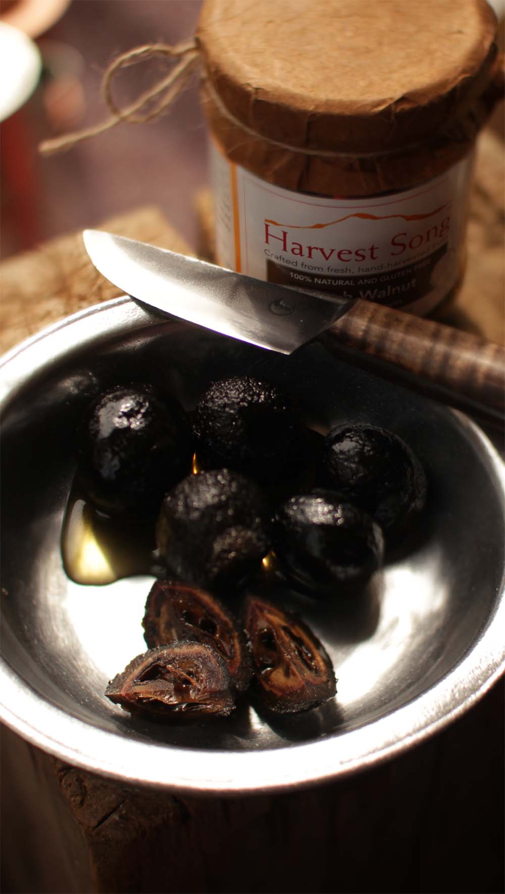 This little store was stocked with everything one could possibly need for the finest cours de fromage.  To customers’ backs was an entire wall of chutneys, crackers, preserves, and dried fruits. It was on this wall that I made a wonderful discovery: preserved young walnuts produced by Harvest Song.