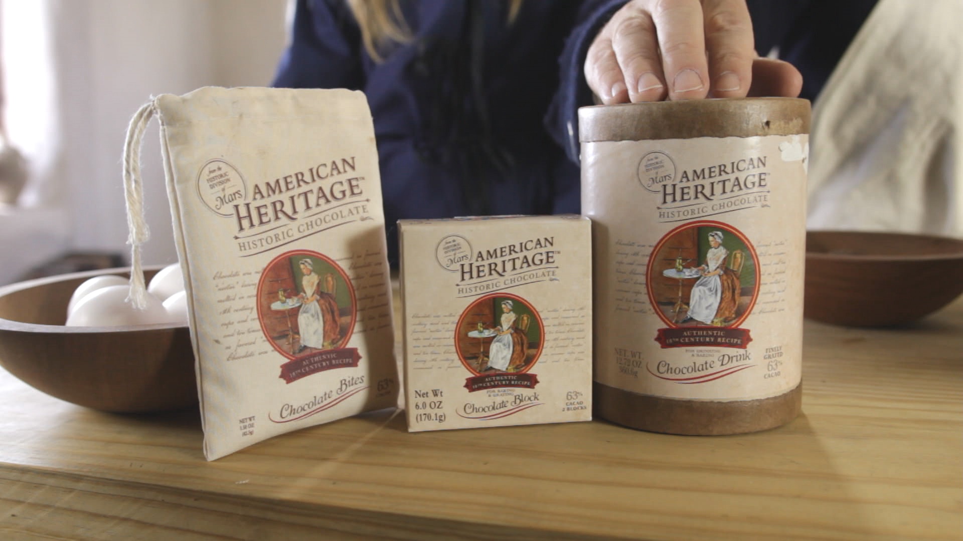 The Mars Corporation has introduced a great product called American Heritage Chocolate. I doubt, however, that you will find it in your local grocery store — that is, unless you live in Williamsburg or the like. Check out Mars’s website for more information on this product. You can purchase it from Jas. Townsend & Son as well if you wish. Mars claims that it’s made using an authentic 18th century recipe. It’s a very nice semi-sweet hard chocolate that has a hint of cinnamon and other spices. It comes in three forms: a 6-oz. block, a 12.72-oz. canister (pre-grated), and individually wrapped snack nips (a great reward for the kiddies for helping you squirt the almonds).