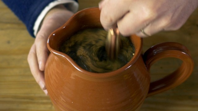 Once it has cooled a bit, season the soup to your liking. Jon adds powder he made from leftovers of a mushroom ketchup (which is flavorful enough to fully substitute portable soup for a vegetarian version).